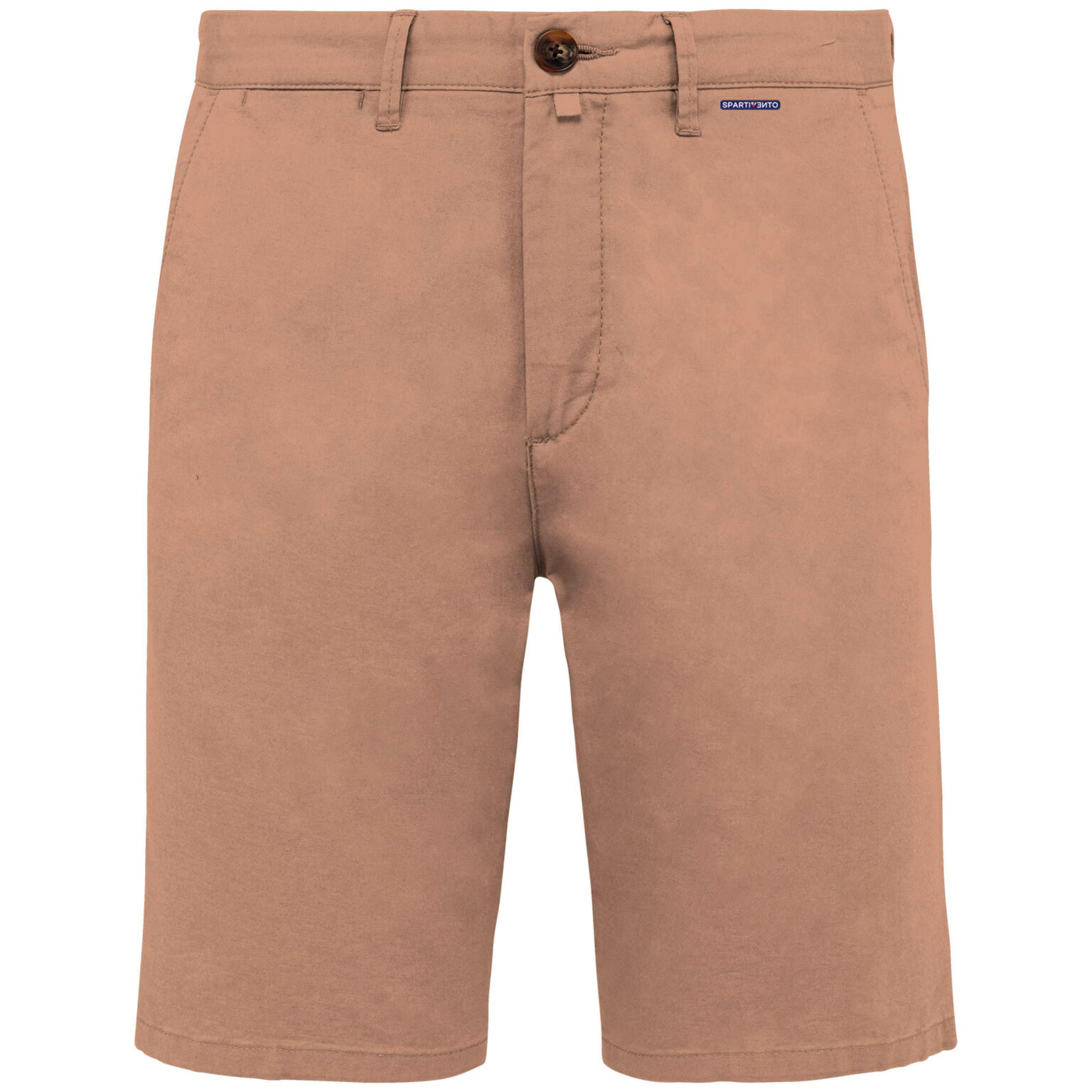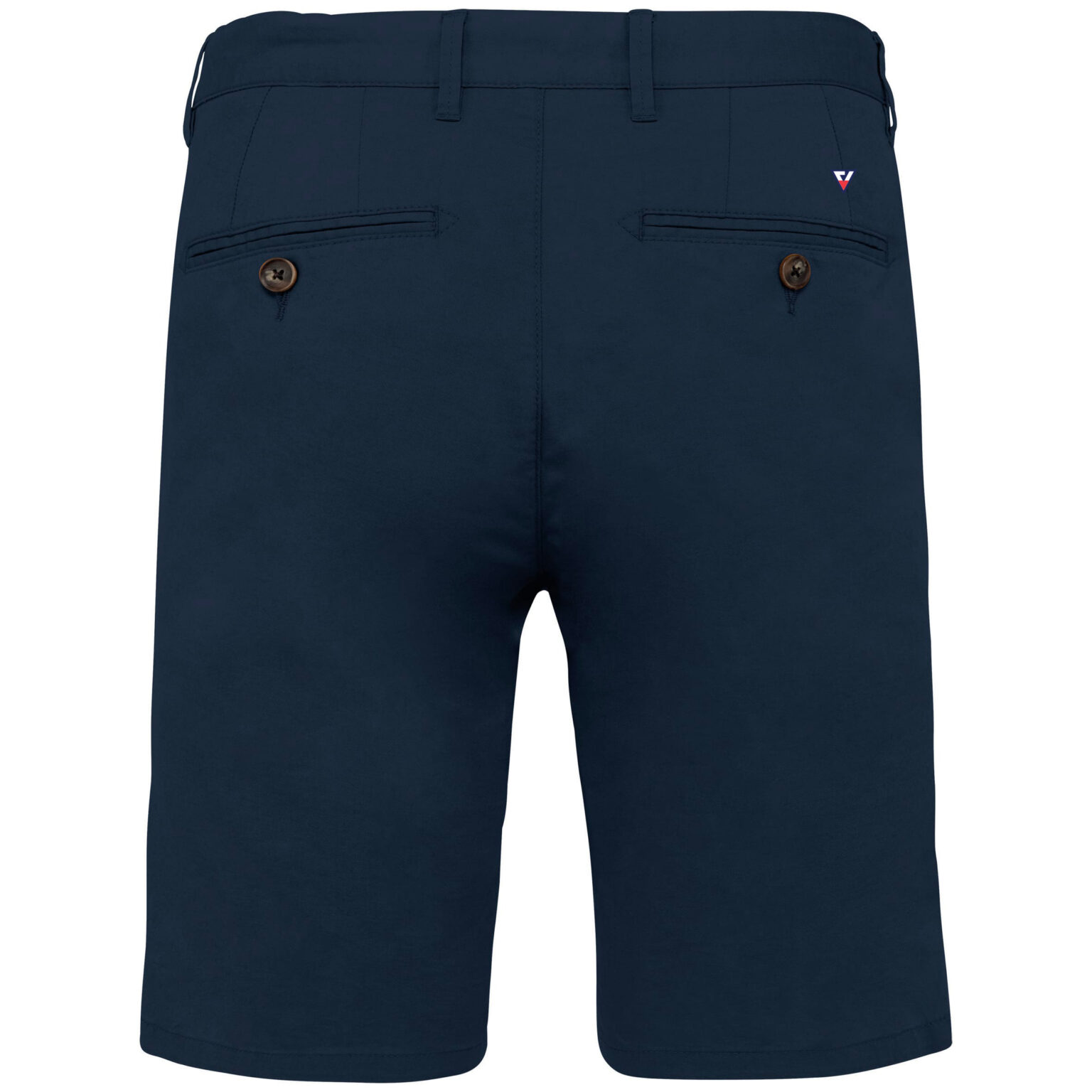 Bermuda in cotone biologico molto fresco, taglio aderente e morbido. Si adatta benissimo a tutti i capi della collezione Spartivento. Tasche laterali e sul retro, motivo nautico nella cucitura interna. Dettagli sartoriali di personalizzazione: bottone cucito in filo rosso, logo Spartivento visibile davanti e sopra il taschino sul retro.