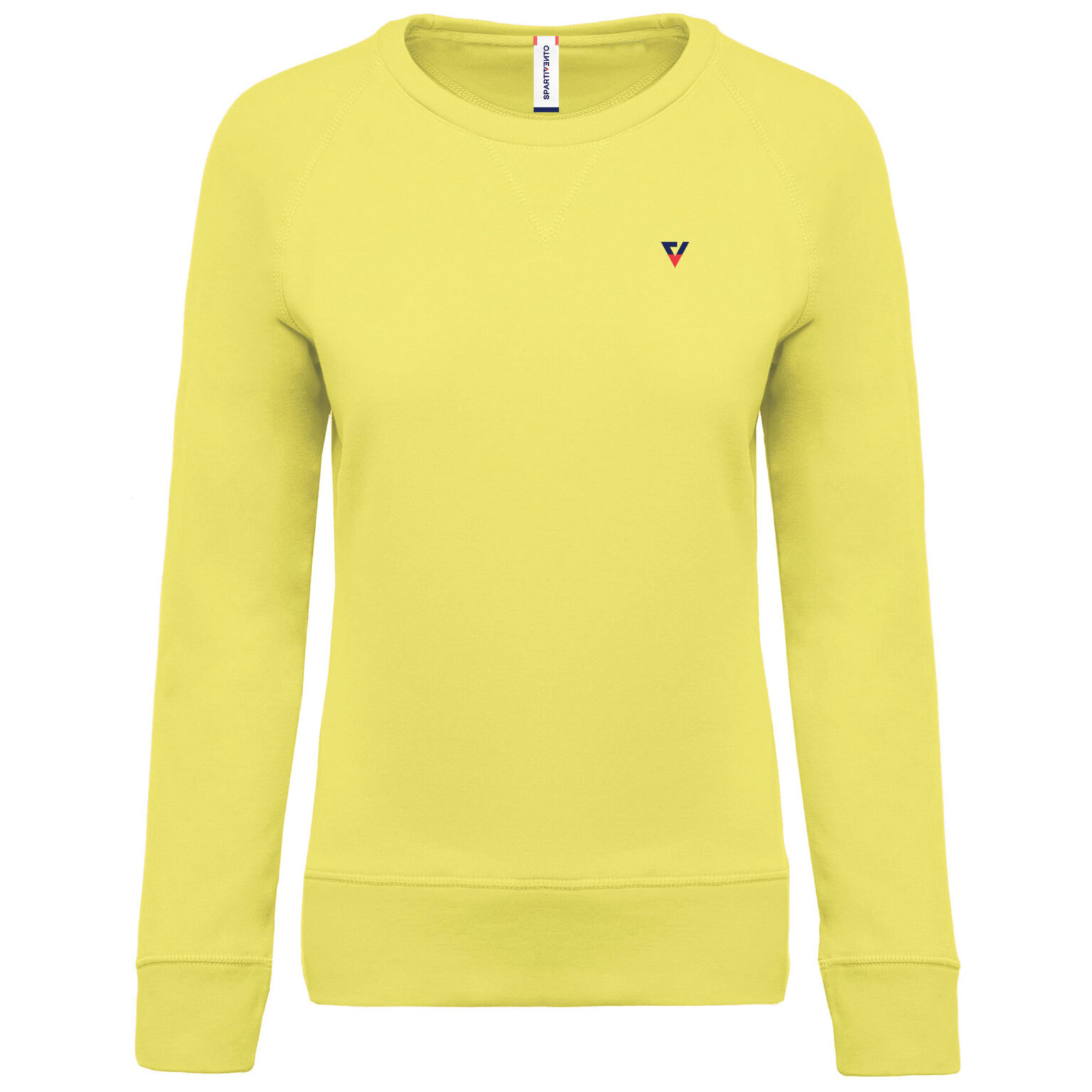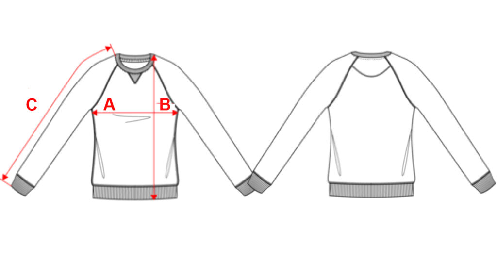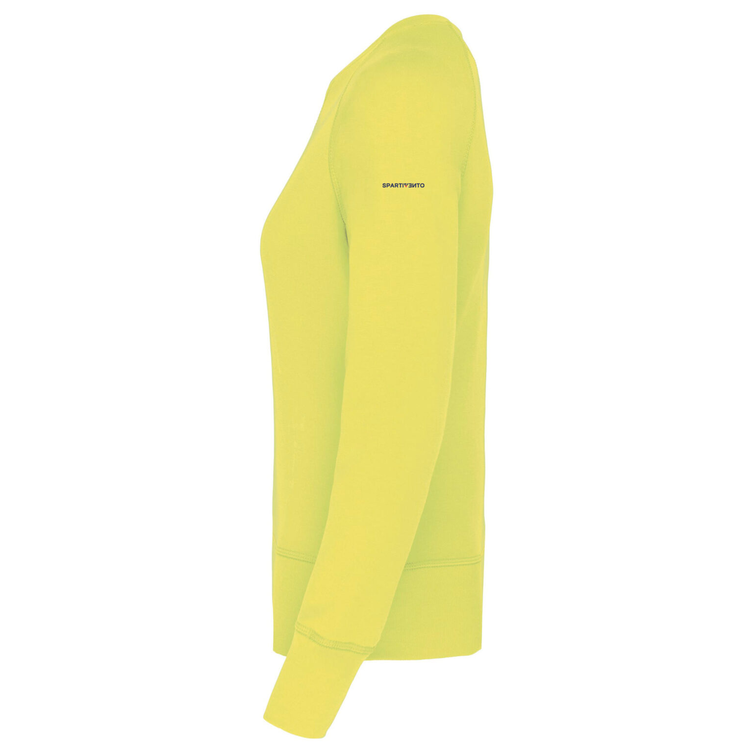 Vestibilità alla moda. Collo, orlo e polsini a costine. Fettuccia a spina di pesce all’interno collo ed inserto con punto a V.