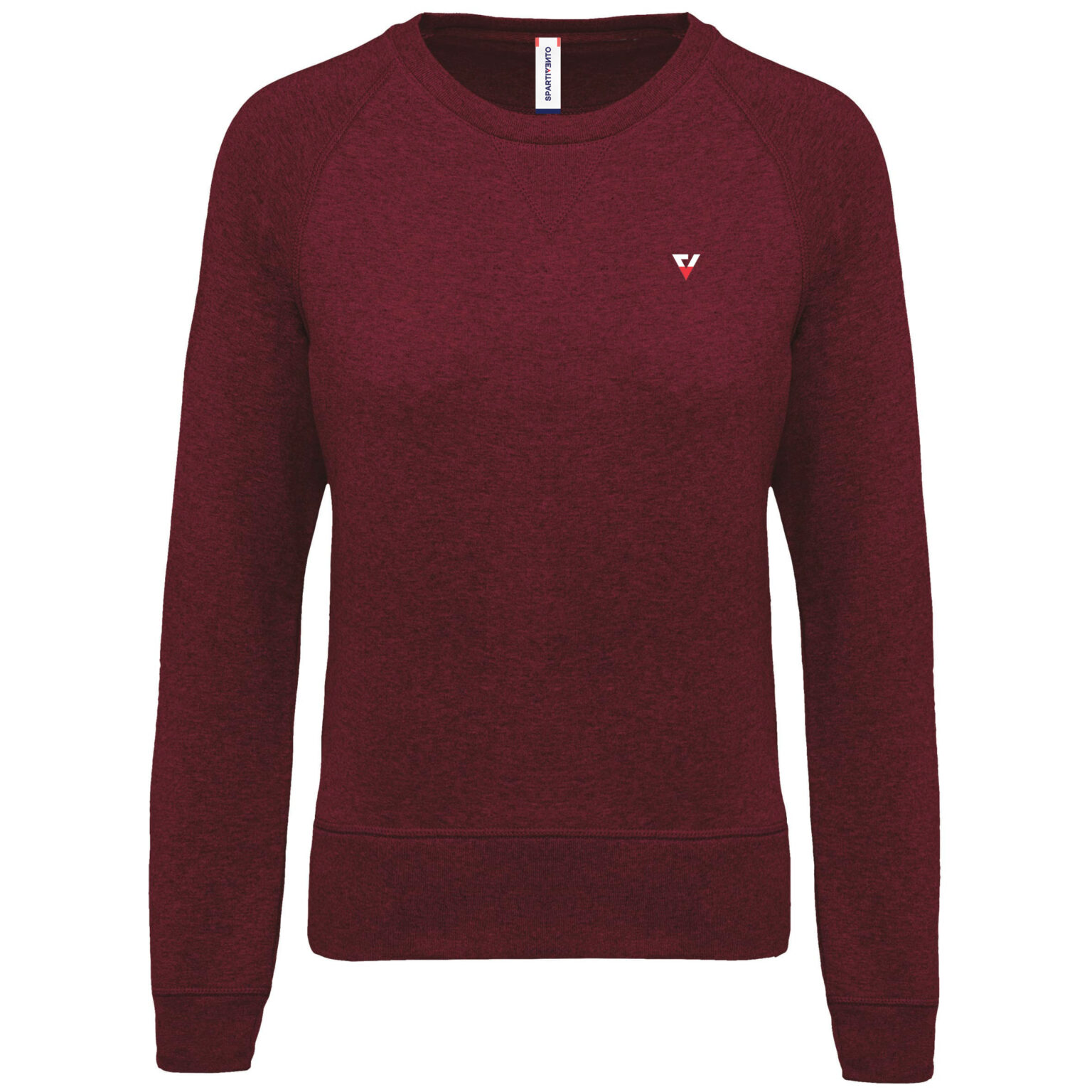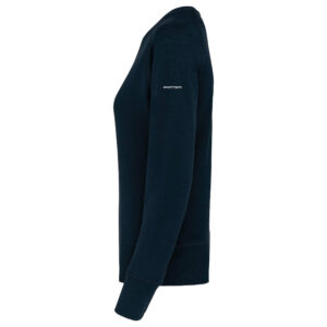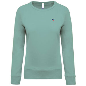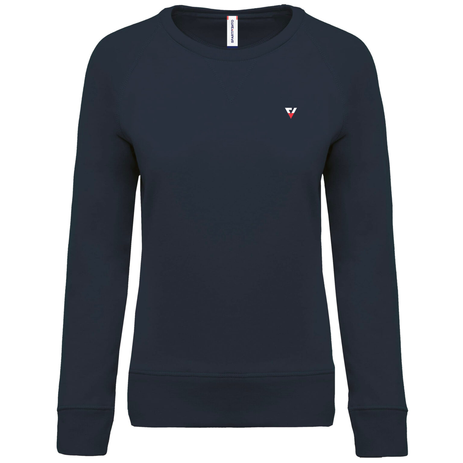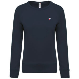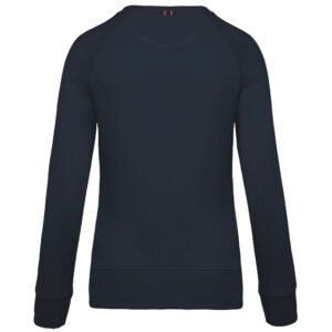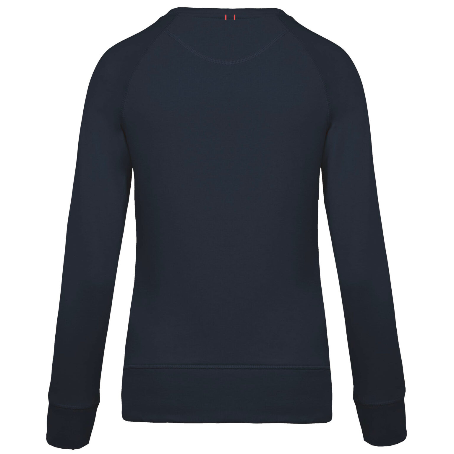 Vestibilità alla moda. Collo, orlo e polsini a costine. Fettuccia a spina di pesce all’interno collo ed inserto con punto a V.