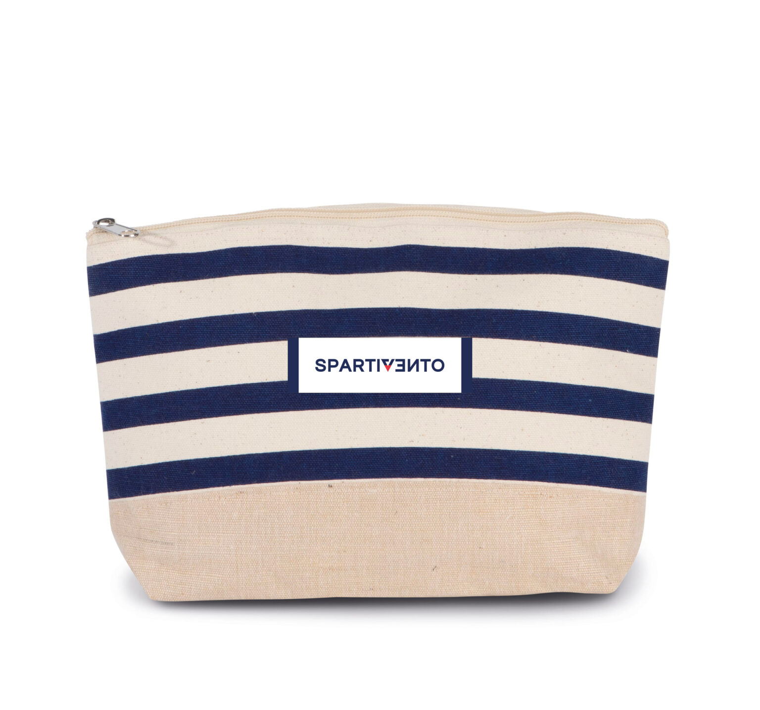 Pochette in tessuto naturale di origine vegetale, resistente ed ecologica. Chiusura con zip per aprire e chiudere facilmente la pochette. Adatta a vari usi, in stile marinaro, proprio in mood Spartivento.
